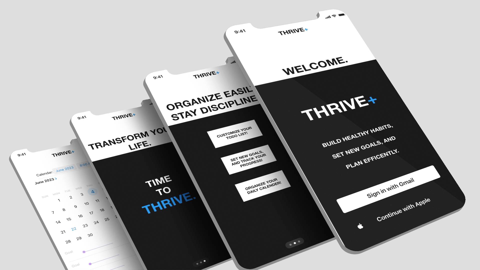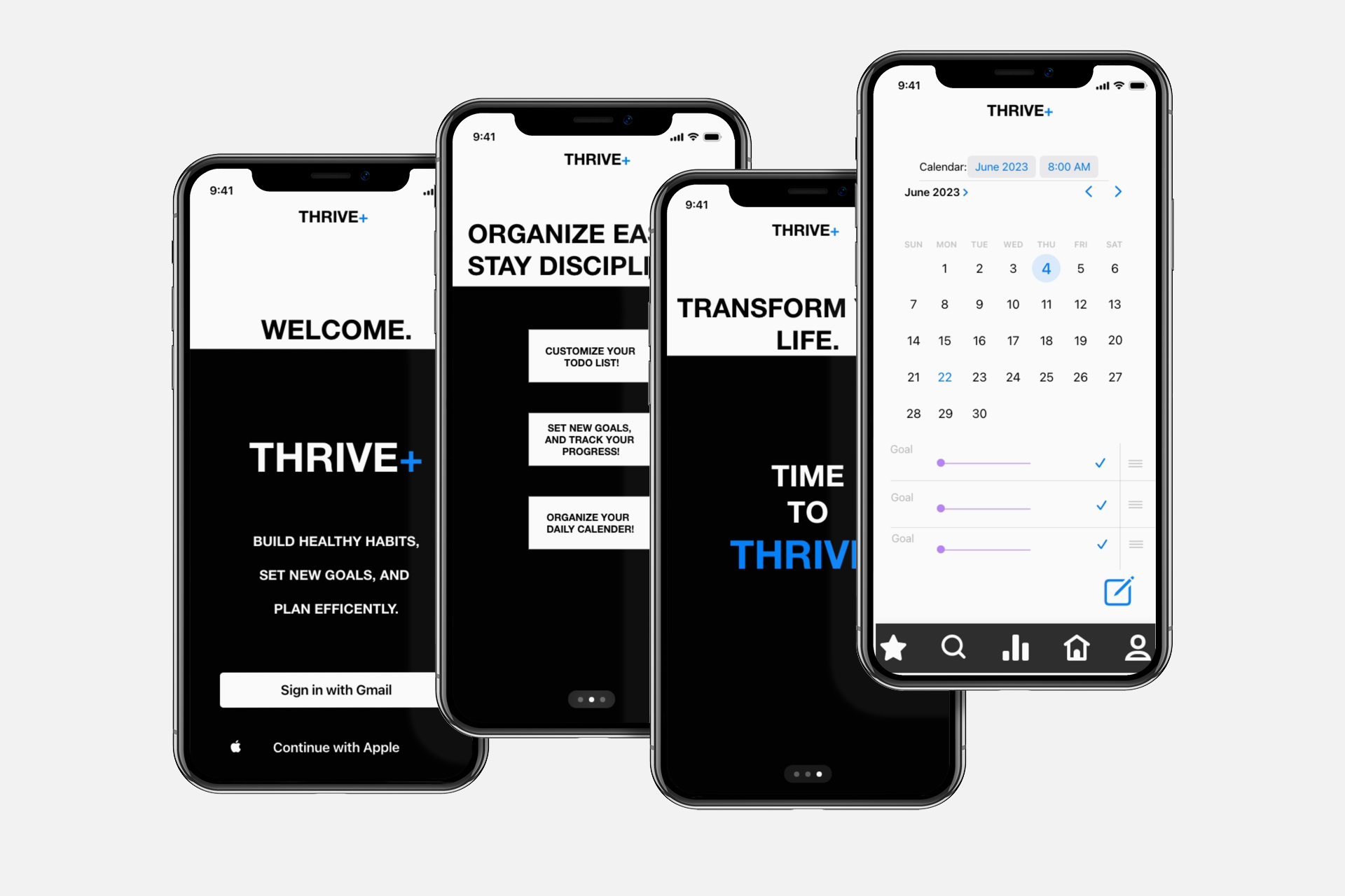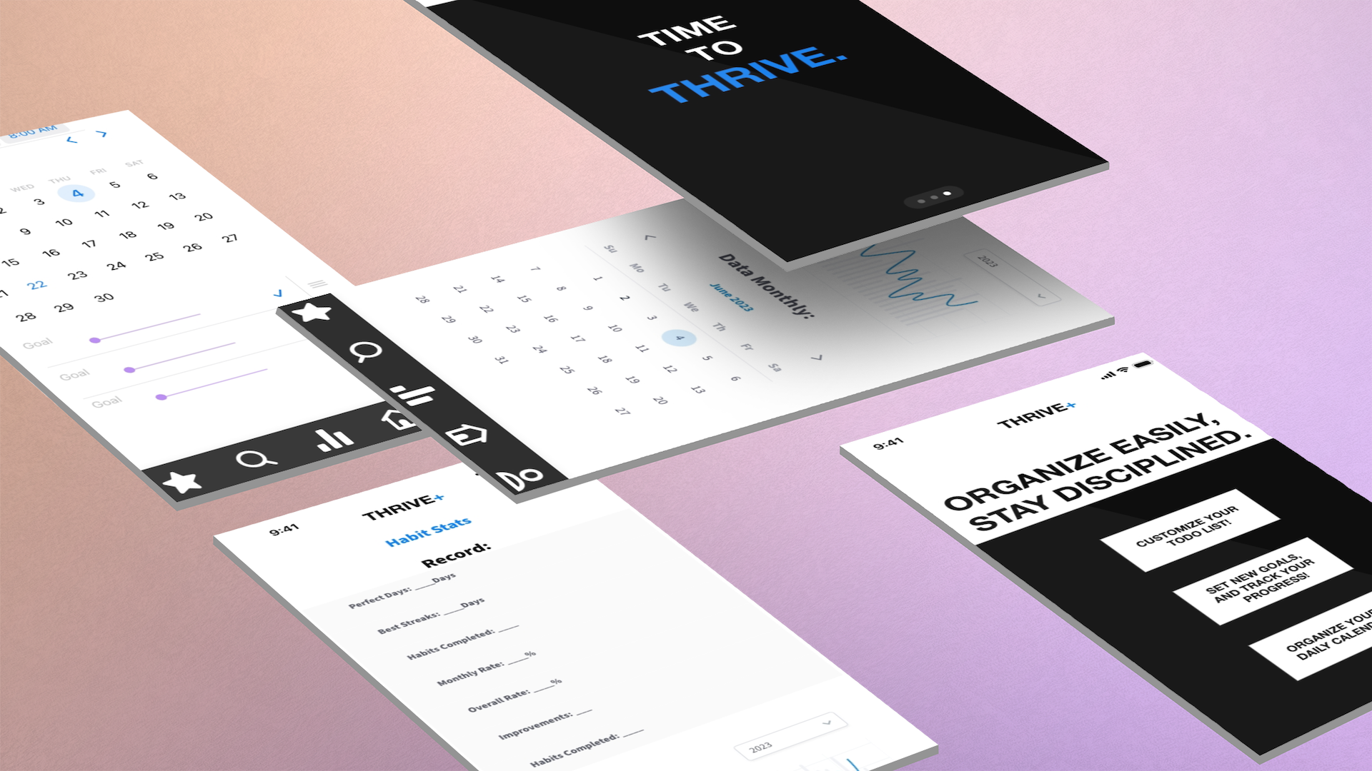 Welcome to the Web Design and UI section, showcasing my experience in Adobe XD and website building tools. This is where I bring digital experiences to life! One standout project is the habit-tracking app that I created for iOS devices using Adobe XD, which I named "Thrive." In this project, my primary focus was on the user interface and overall user experience. I thoughtfully designed every element of this app to enhance usability and engagement.